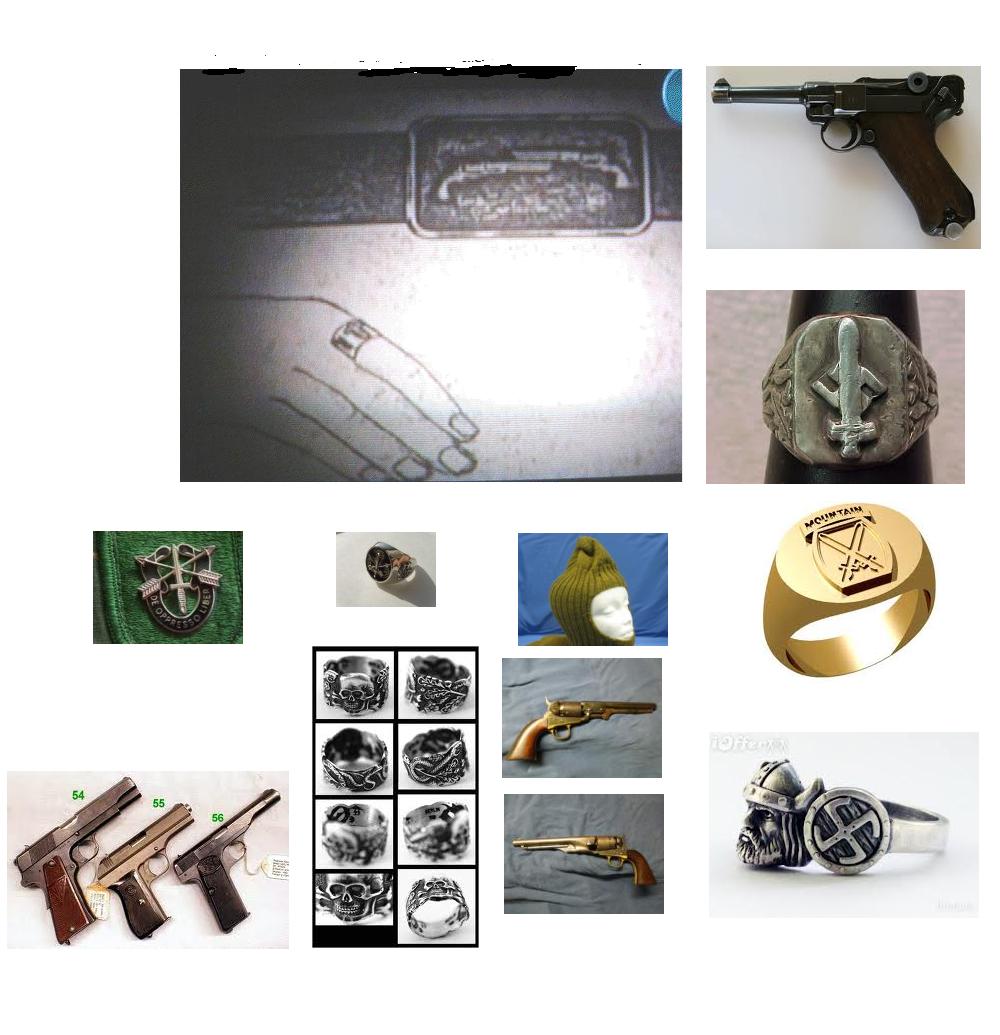 notice again the reference to the number 11 which is besides being Joseph Mengeles birth date and number stamp a recurring thread in these unsolved cold cases. Maybe a number that is left as a reference that this is a military operation or training. Or maybe who ever was involved with this was obsessed with Nazi SS symbols and was into collecting military paraphernalia. Take a look at some of these military and Nazi rings and guns.