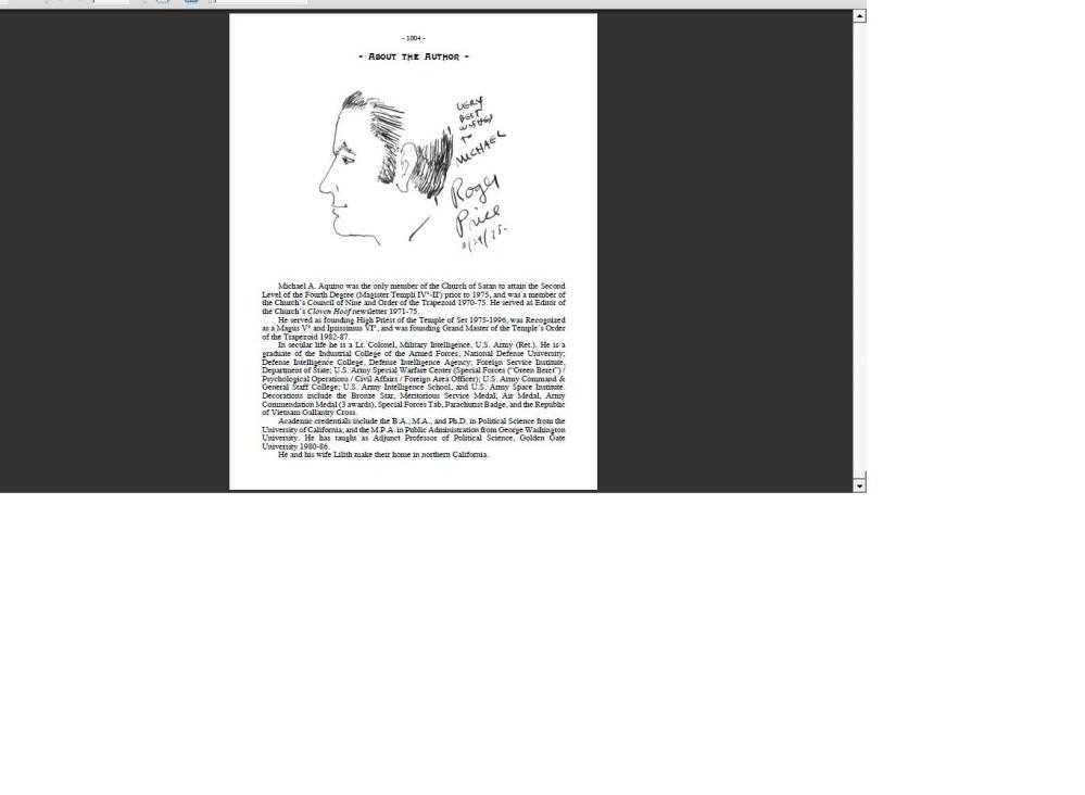 Aquino, Michael–>vain Ipsimus 6th Deg. of T of S, Missouri; Lt. Col. U.S. Army w/high level sec. clearance; military Intel. & Army’s psychic warfare battalion; Green Beret; ACLU member; Defence Intel. College; prominent teacher of creating Monarch slaves.