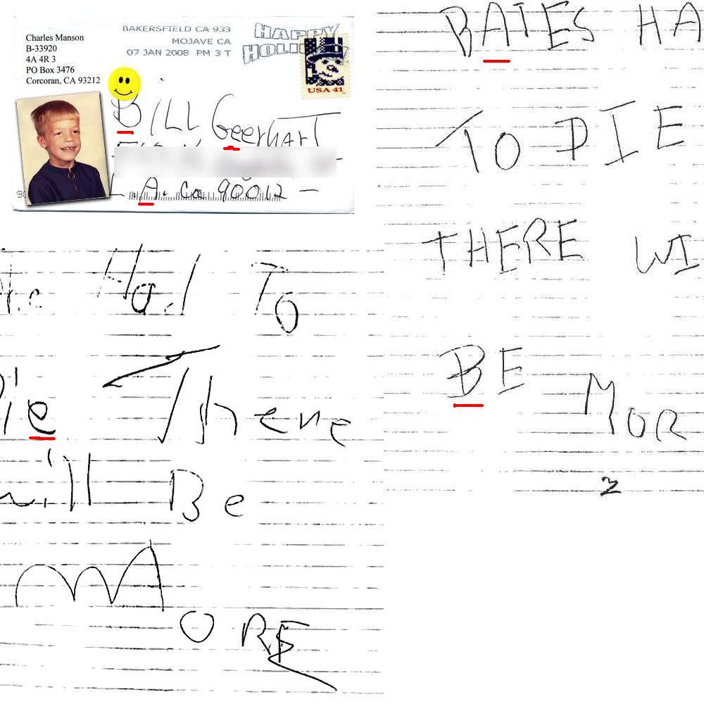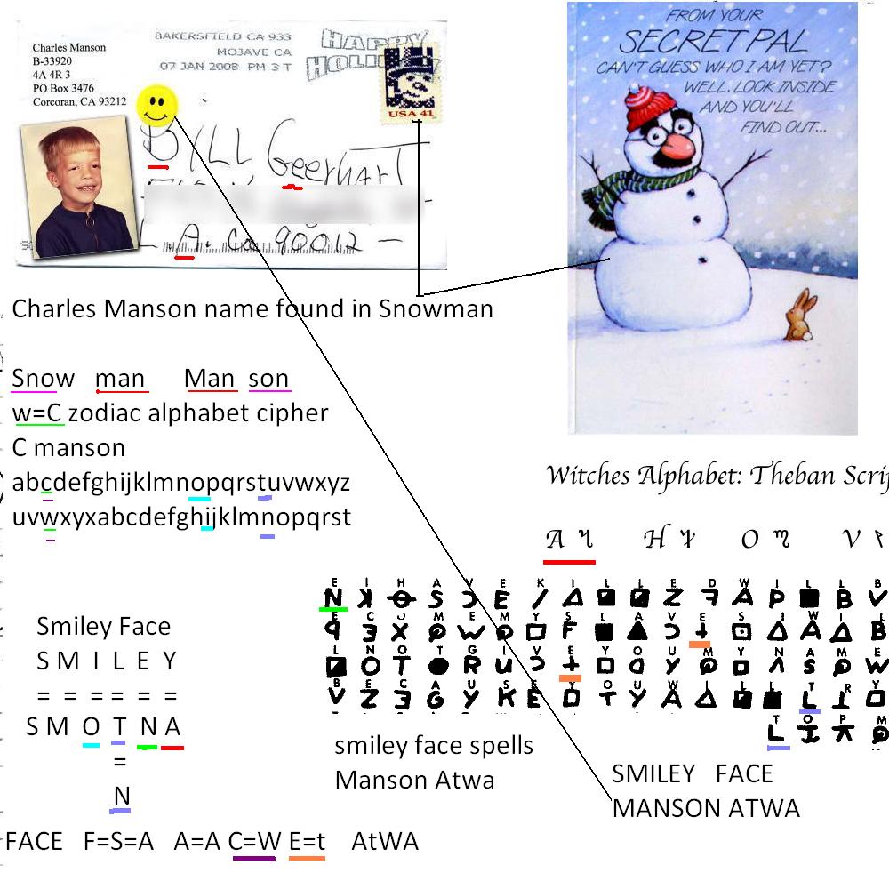 We found this on the internet an envelope that Charles Manson sent to a fan. Notice the stamp and smiley Face. Was he letting everyone know that this is him?